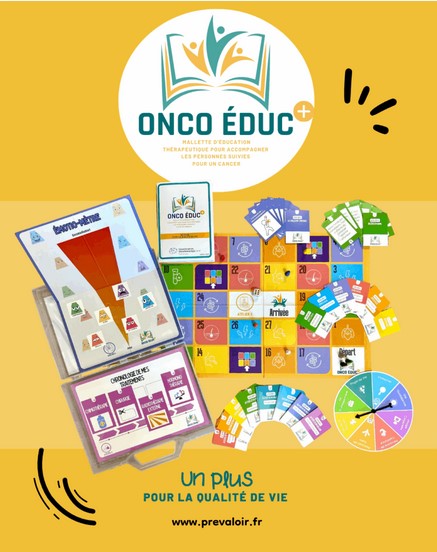 La mallette Onco’ Éduc est un outil pédagogique développé par l’association Prévaloir, en lien avec des professionnel·le·s de santé, pour accompagner les personnes concernées par un cancer.